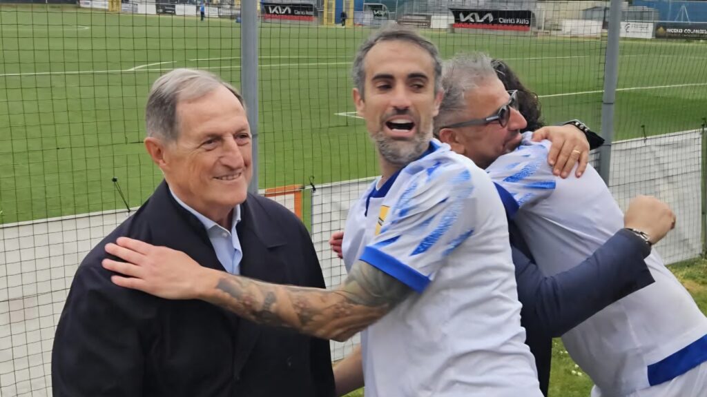 Poi le notizie dagli altri campi: la Solbiatese cade, e al triplice fischio è gioia pura, con il Gruppo Randa e lo striscione con la “D”: il simbolo di un ritorno meritato.